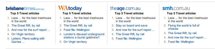 11/09/11: I’m pretty chuffed my first published article seems to have been well received – thanks to all who’ve read and enjoyed. It’s around 7pm Sunday night and it’s running as the top story in four States in Fairfax online. I’m not sure whether the attention I’ve been paying the piece has driven that or whether it’s genuinely had people interested. So far 28 Facebook shares and 10 tweets – I’m not sure what to expect but I’m happy with that : ). Right, now for the next article…